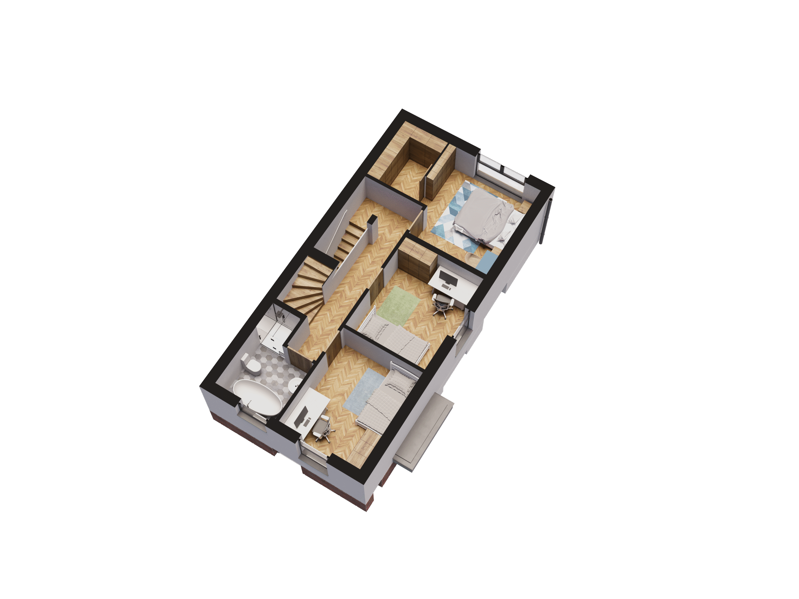Nasze domy wyposażone są w energooszczędne, 3-szybowe okna 6-komorowe o niskim współczynniku U, zapewniające doskonałą izolację termiczną, wysoką efektywność oraz znacząco niższe koszty ogrzewania.